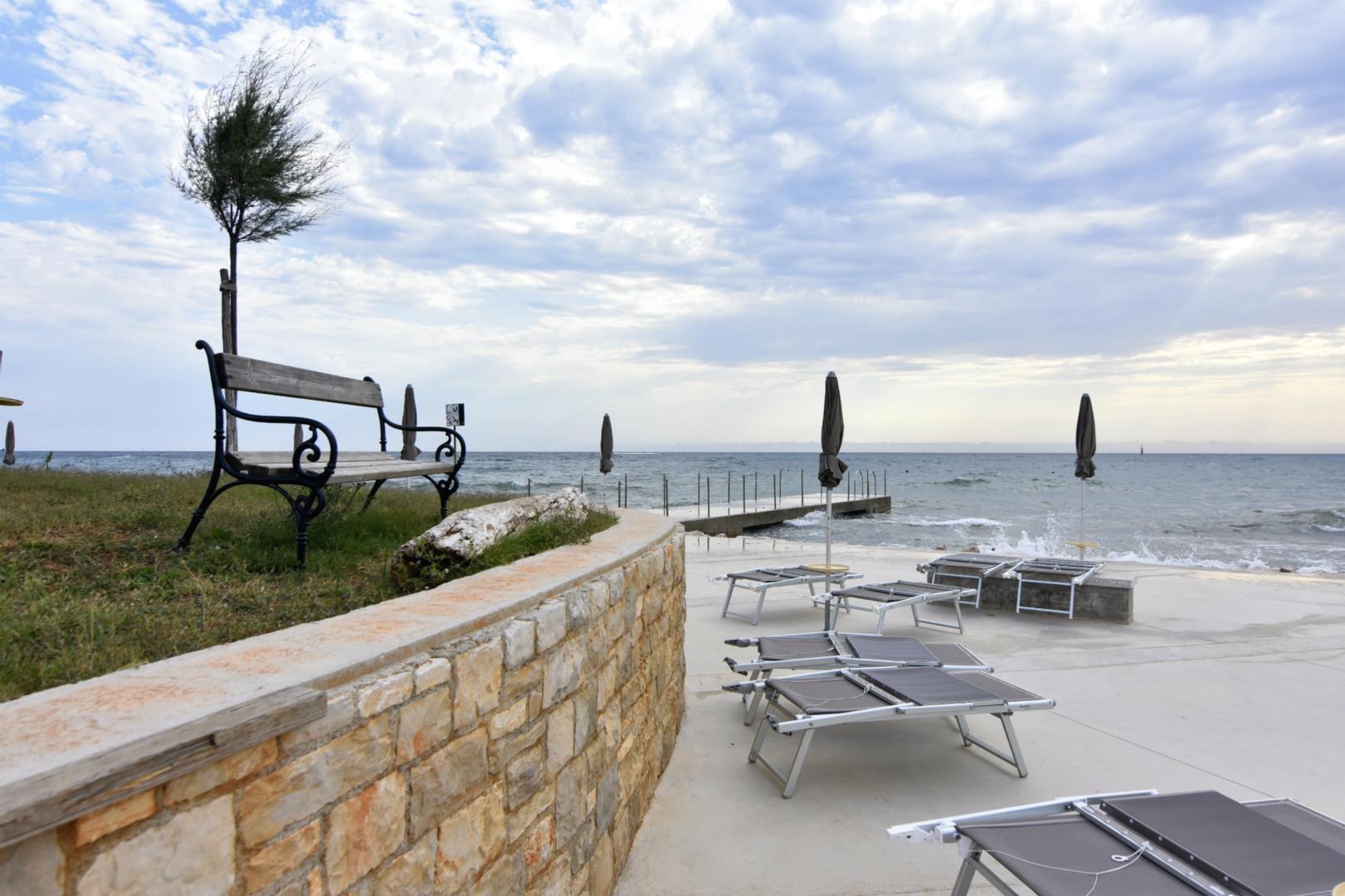 Apartman se nalazi u Zambratiji, malom ribiškom mestecu u blizini Umaga. Območje je edinstveno stvorilo dobro opremljene peščene plaže, idealne za djecu, gdje možete izložiti ležalnike u senčnike. Bar Destino na plaži je izvrsna krajina za preživljavanje večera na sprovodu morža u čudnim sončnim užicima uživanja u ukusnim pićima iz bara. Majhen supermarket s sosednjim barom odličan je za jutranjo kavo. Na raspolaganju su tako sportske mogućnosti, odlične ribje restauracije, picerije, bari na plaži. Z rezervacija na Trevitoursu može se istražiti nakon što je izlet: potovanje z ladjo, autobus, izlet u Benetke, PN Brijuni, Pula. V Umagu je otroško igralište, akvarij, muzej za obisk. Nekaj kilometara od Grissignanea, mjesta umjetnika, Motovun, mjesto, znano po filmskim festivalima, Hum najmanjše mjesto na svijetu, Istralandia (vodni park) u još nekoliko sati.