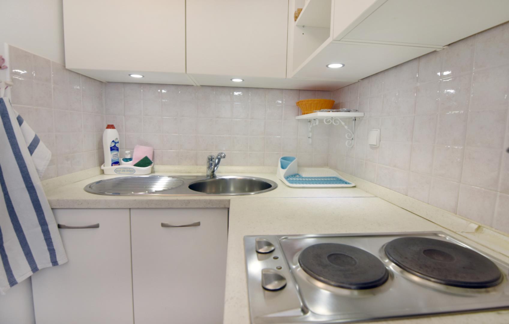 Studio s tušem, spavaća soba s čajnom kuhinjom, stol za dvije osobe, bračni krevet, SAT TV, klima uređaj, balkon, besplatno parkiralište u blizini kuće. Restoran u prizemlju uz more, gdje pripremaju svježu ribu i plodove mora. Idealno mjesto za one koji vole prirodu i opuštanje. Kućni ljubimci (samo mali do 10 kg) naplaćuju 10 € po noćenju, plaća se po dolasku.